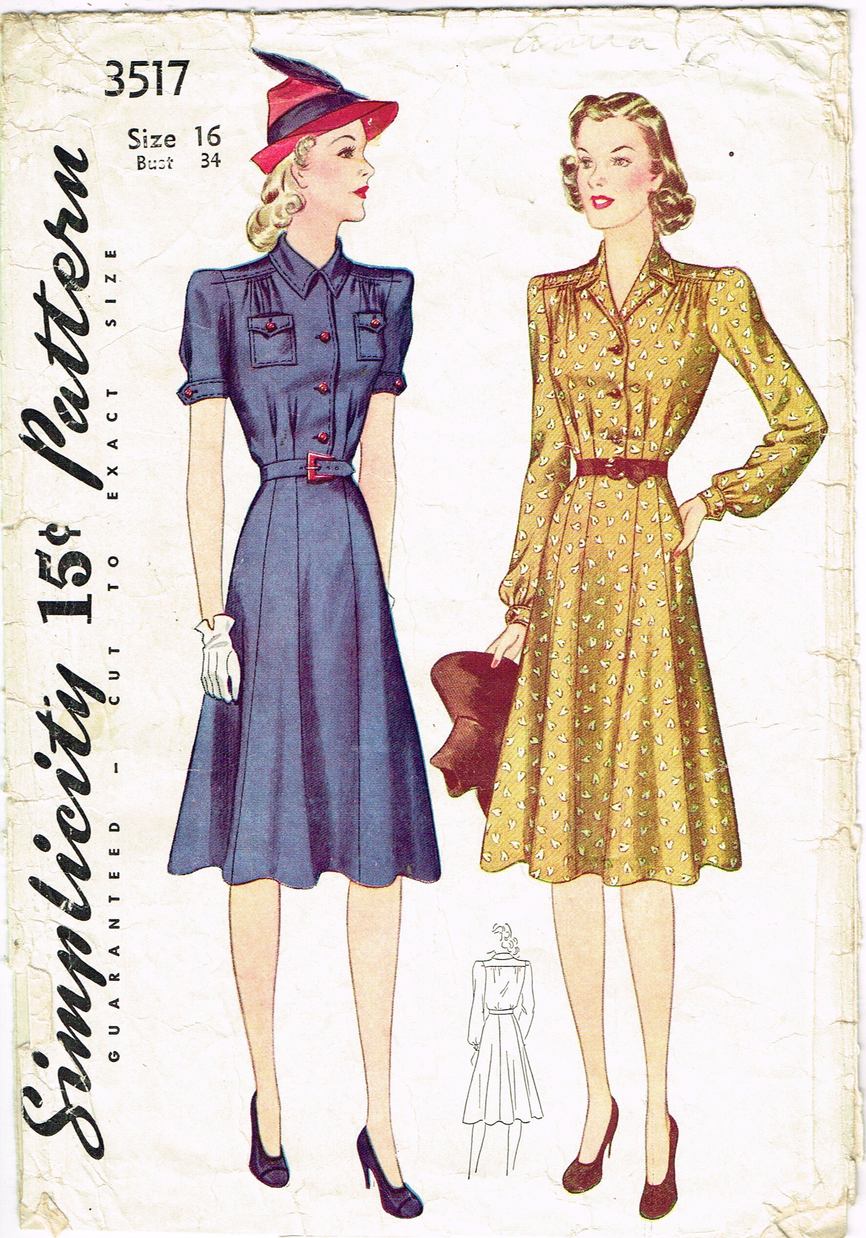 Simplicity 3517 1940s Misses Wwii Shirtwaist Dress 34 B Etsy Canada